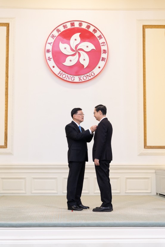 【2025年11月16日】香港致雨慈善基金會主席、香港綠色金融協會主席兼會長馬駿博士獲香港特別行政區行政長官李家超先生頒授榮譽勳章,以表彰其多年來在推動香港及區域層面綠色與可持續金融政策、融資及投資發展方面的卓越貢獻。